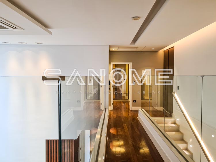 Piso superior: 4 suítes (master com closet e banheira e 2 americanas).