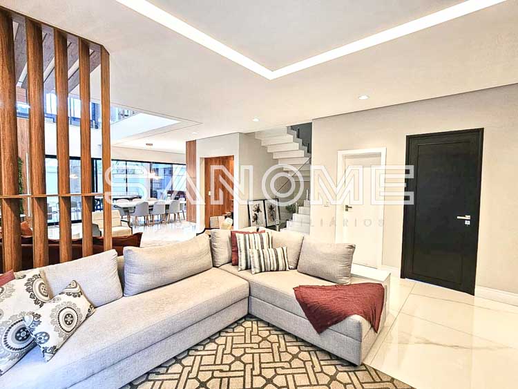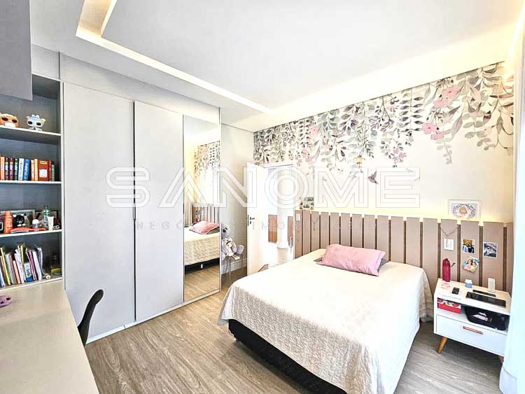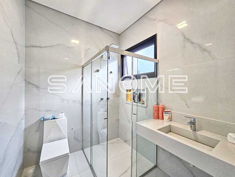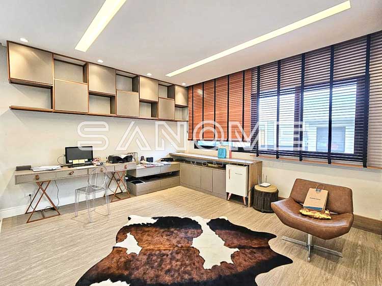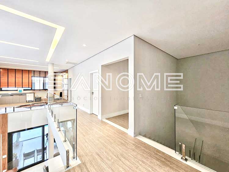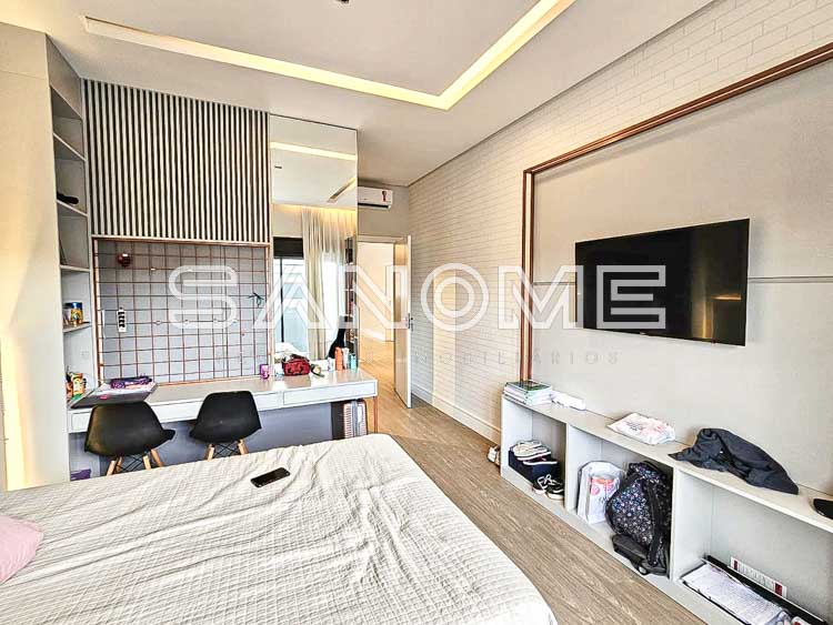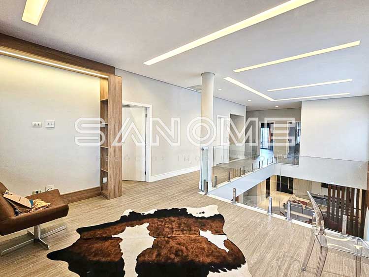 Piso superior: Sala íntima (usada como escritório) + 4 suítes (master com closet e hidromassagem).