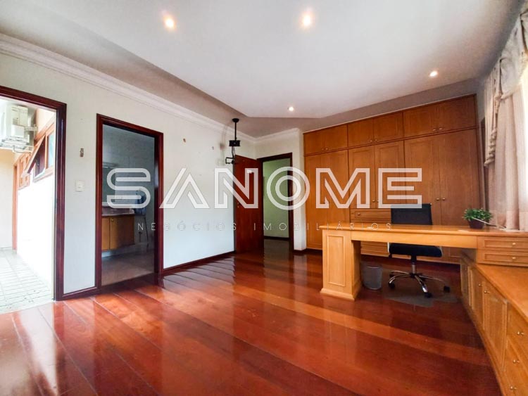 Piso superior: 4 amplas suítes com varanda (master com closet e hidromassagem) + Escritório.