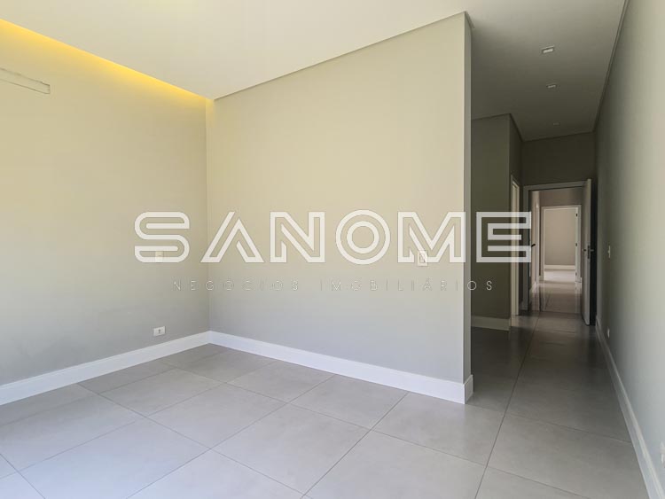 Térrea, 3 suítes (master com closet e acesso para área externa), Hall de entrada com lavabo e escritório, Salas integradas com pé direito duplo, Cozinha integrada, Despensa, Área de serviço, Depósito/Hobby box, Área gourmet, Banheiro de lazer externo e Piscina.