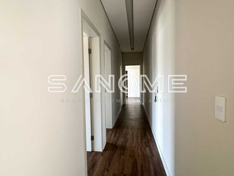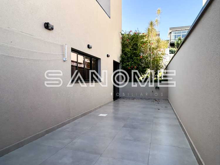 Piso principal (térrea): 4 suítes (master nos fundos com closet, varanda externa e integrada ao quintal), Entrada pela lateral, Entrada pelo elevador, Entrada por escada, Sala de estar, Lavabo com claraboia, Cozinha integrada repleta de armários, Área de serviço com amplo espaço multiuso na lateral.