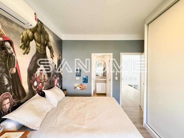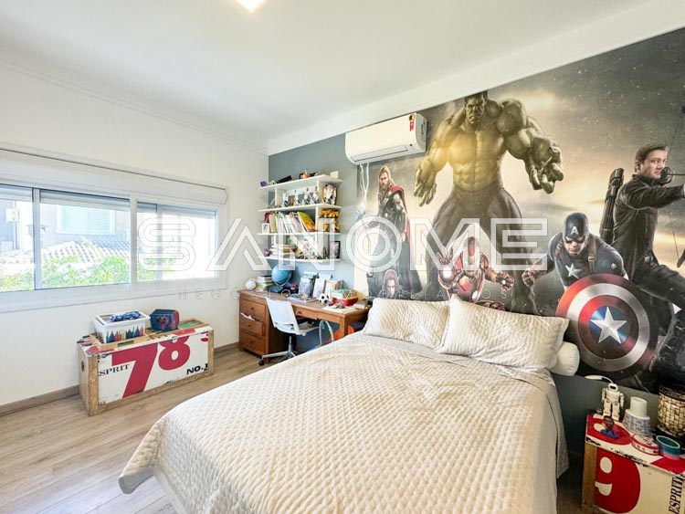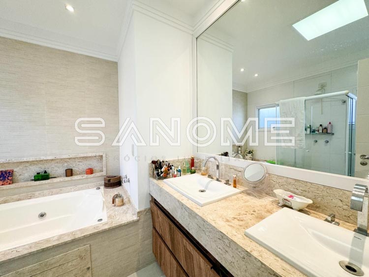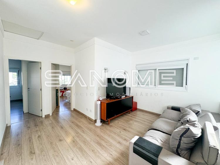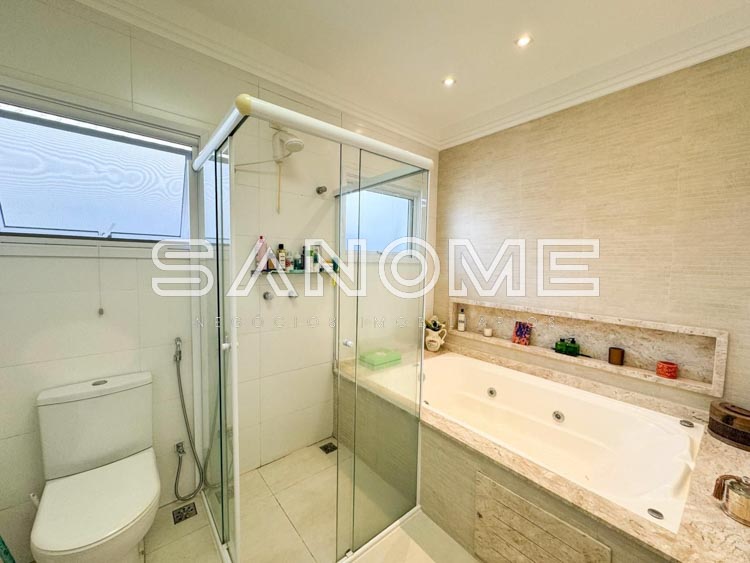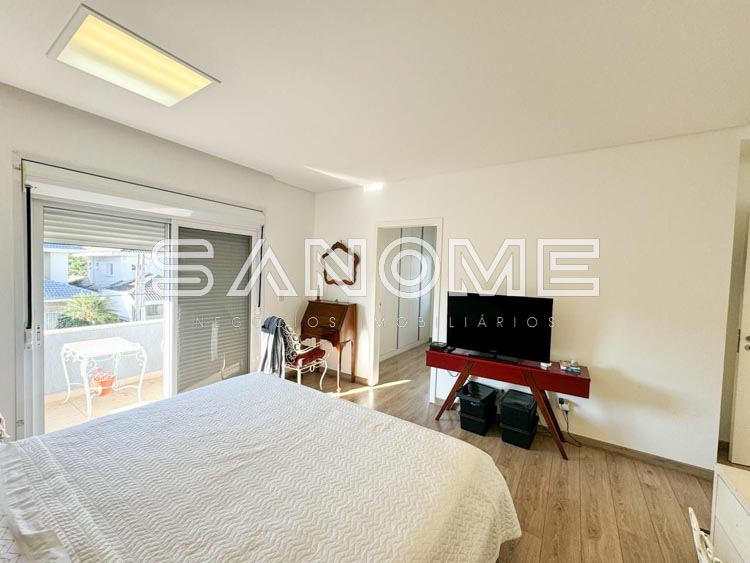 Piso superior: Sala de TV + 3 suítes completas (master com closet e hidromassagem).