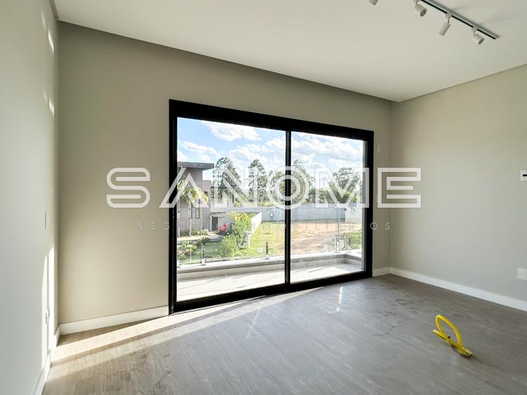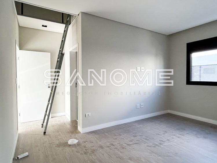 Piso superior: Sala íntima entre os quartos, 1 dormitório + 4 suítes (master com closet e banheira).