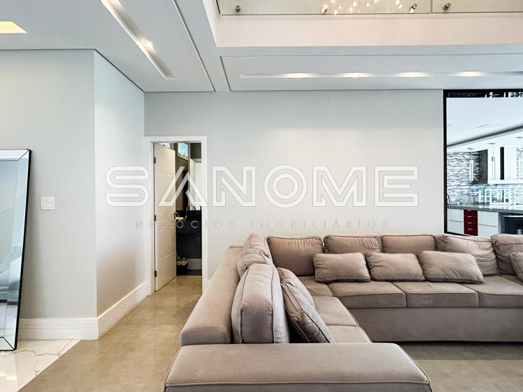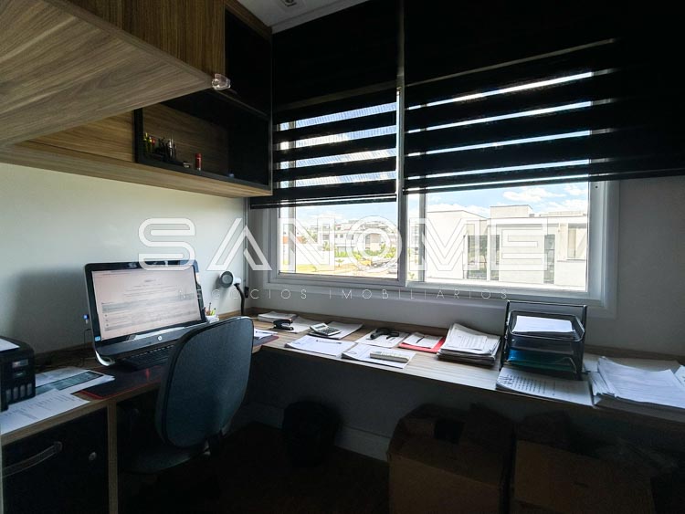 Piso superior: Escritório + 4 suítes (master com closet, sala íntima, chuveiro duplo e varanda com vista).