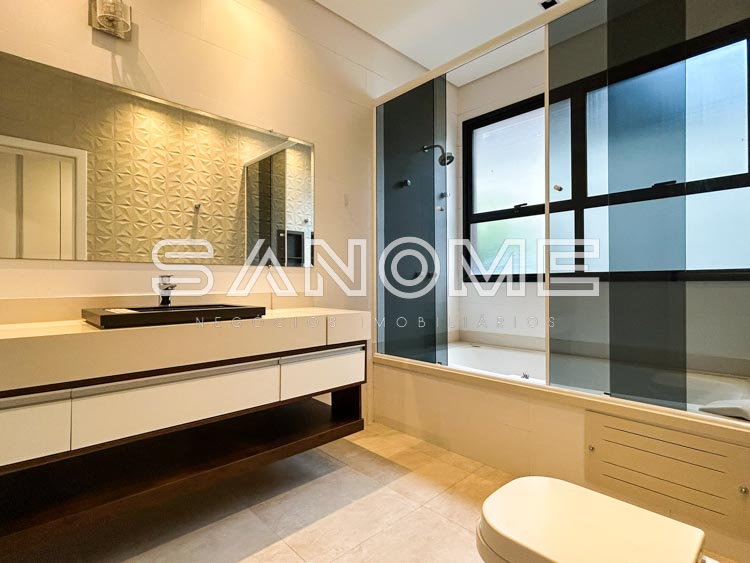 Piso superior: Sala íntima entre os quartos + 3 suítes (2 com closet e banheira).