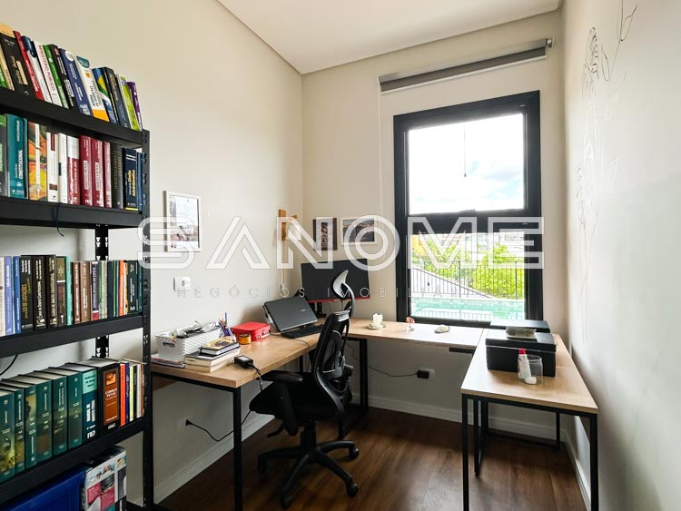 4 suítes (master com closet, escritório privativo e hidromassagem), Sala 2 ambientes integrados, Sala de TV, Lavabo, Cozinha integrada, Despensa, Área de serviço, Área gourmet, Banheiro de lazer externo, Amplo quintal gramado nos fundos e Piscina aquecida com hidromassagem.