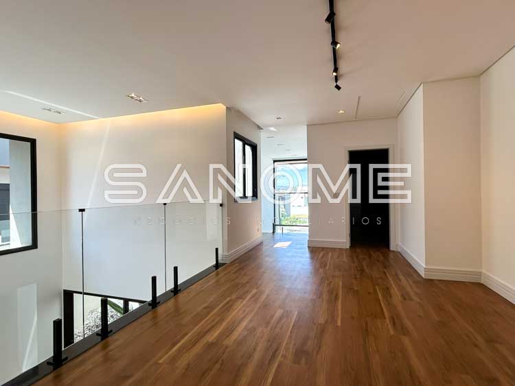 Piso superior: Sala íntima entre os quartos + 4 suítes (master repleta de armários e sala de banho com banheira).