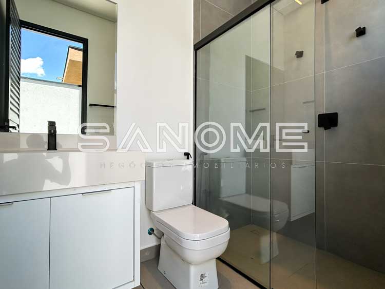 Piso térreo: Hall de entrada, Lavabo, Escritório (1 súite), Salas integradas com pé direito duplo, Cozinha integrada, Despensa, Área de serviço, Varanda gourmet com fechamento em vidro, Quintal gramado, Banheiro de lazer externo e Piscina com prainha.