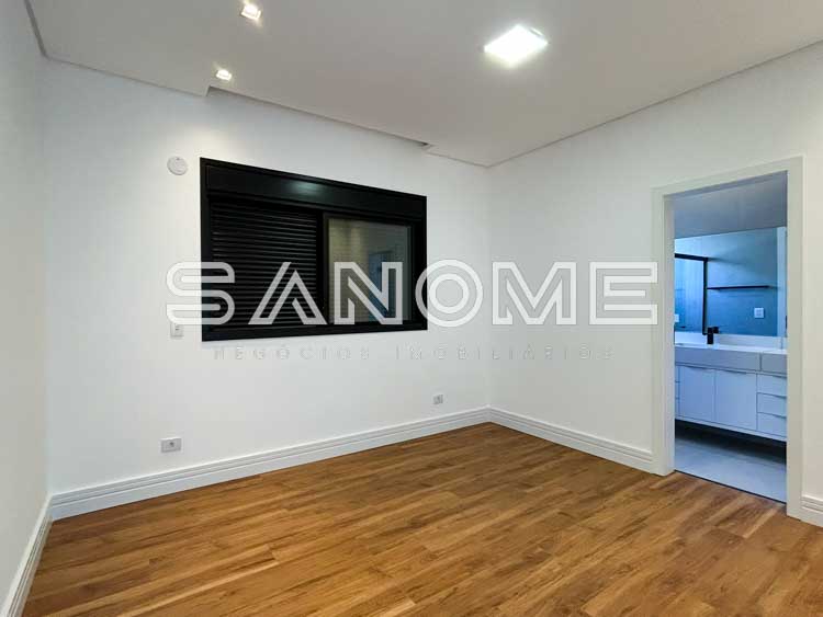 Piso superior: Sala íntima entre os quartos + 4 suítes (master repleta de armários e sala de banho com banheira).