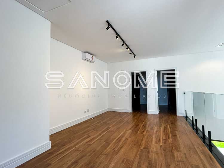 Piso superior: Sala íntima entre os quartos + 4 suítes (master repleta de armários e sala de banho com banheira).