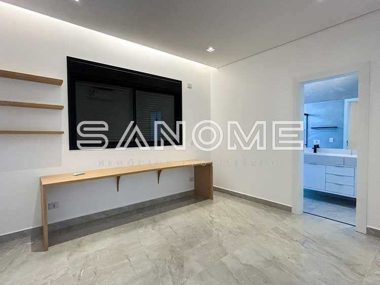 Piso superior: Sala íntima entre os quartos + 4 suítes (master repleta de armários e sala de banho com banheira).