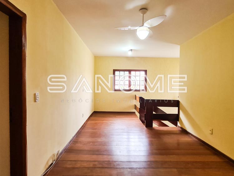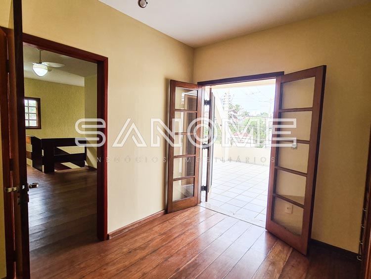 Piso superior: Sala íntima, Escritório com armários (reversível +1 dormitório), Varanda frontal e 2 suítes com varanda para os fundos. (suíte master com closet).