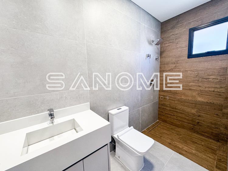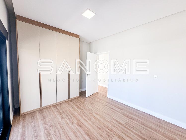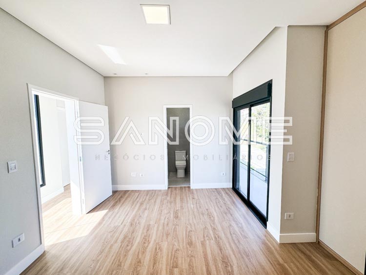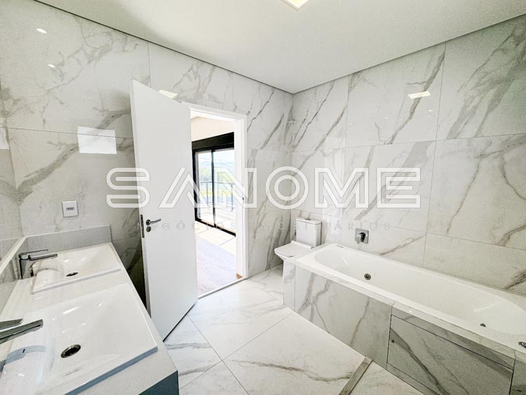 Piso superior: 4 suítes com armários embutidos (master com closet e hidromassagem).