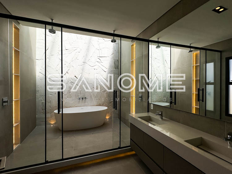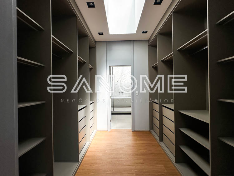Piso superior: Copinha, Corredor com armários e 4 suítes (master com closet e banheira).
