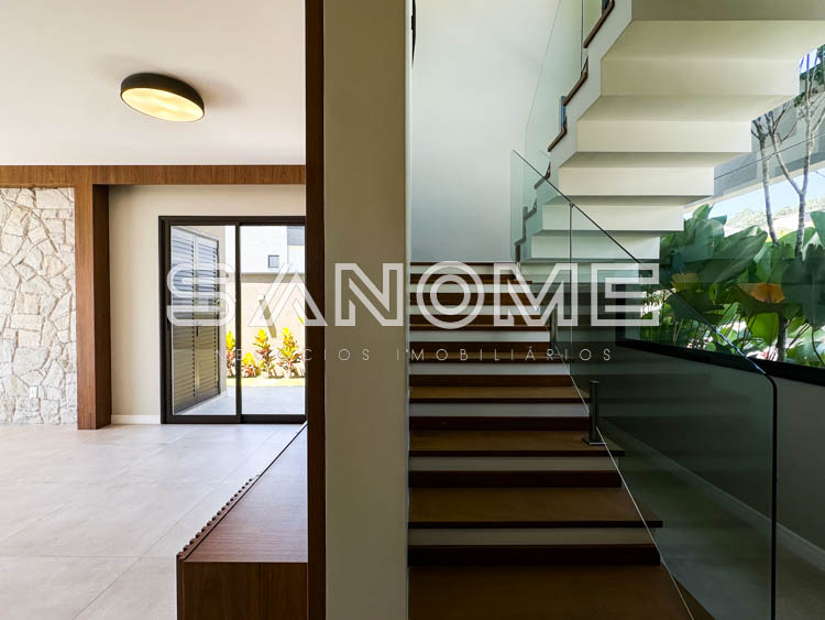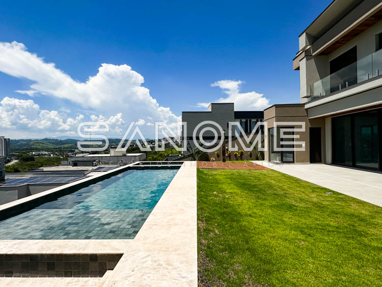 Piso térreo: Salas integradas, Lavabo, Hall de entrada, Cozinha gourmet integrada(com eletrodomésticos), Área de serviço, Quintal gramado, Banheiro de lazer externo, Sauna e Piscina com borda infinita e spa.