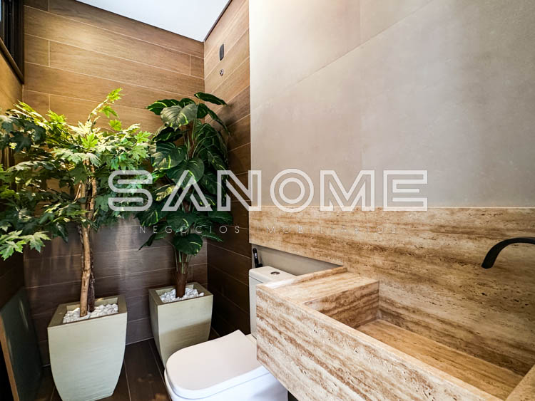 Ar condicionado, Sistema de energia fotovoltaica com 9 placas solares, Aquecimento solar com boiler, Automação, Internet em todos os cômodos, Paisagismo, Hobby box e Carregador para carros elétricos.