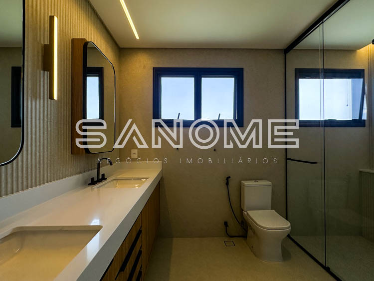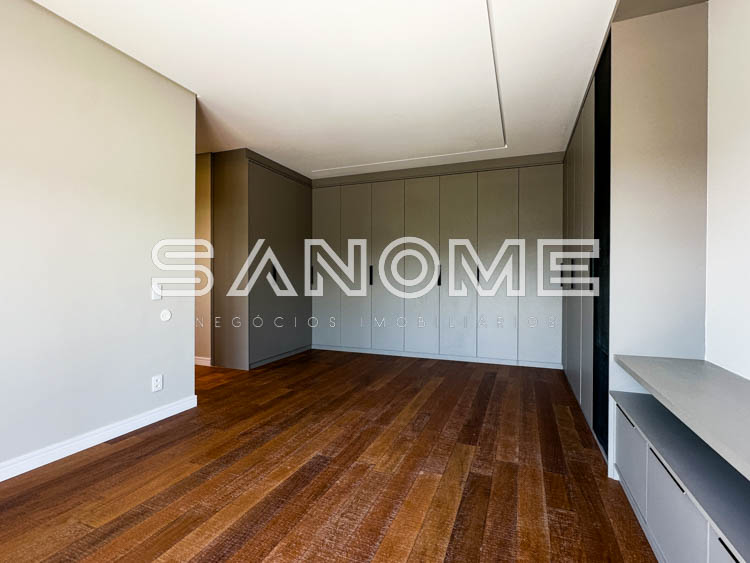 Piso superior: Corredor com armários + 4 suítes completas.