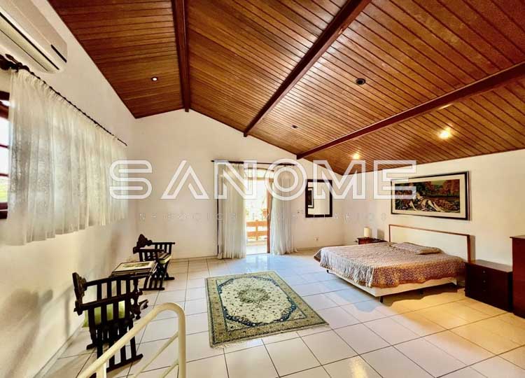 Piso superior(mezanino): Ampla sala multiuso com sacada (atualmente utilizada como dormitório), Banheiro social e Escritório.