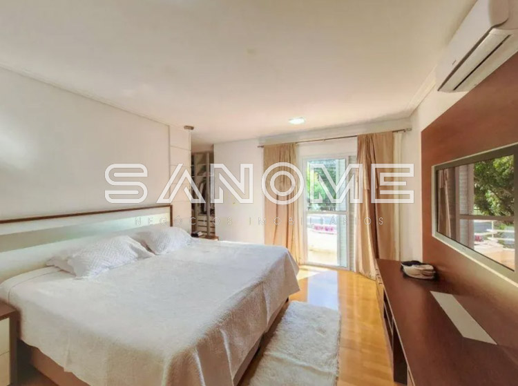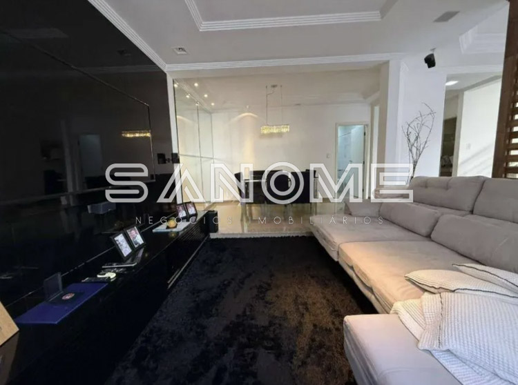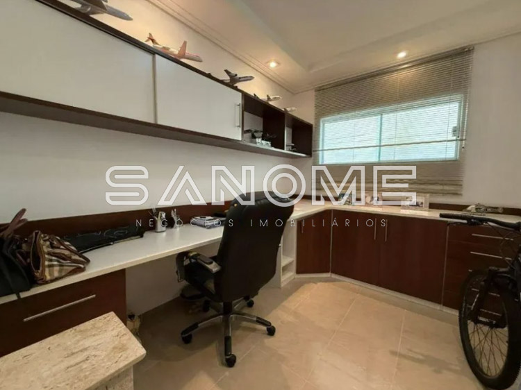 Piso térreo: Sala de estar, Lavabo, Sala de jantar, Sala de TV, Escritório, Cozinha planejada, Área de serviço, Área gourmet completa, Banheiro de lazer e Piscina com cascata.