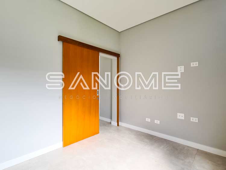 Piso térreo: Sala 3 ambientes integrados, Escritório (reversível +1 suíte), Banheiro social, Área gourmet com churrasqueira, Cozinha integrada, Área de serviço, Quarto multiuso externo (academia, brinquedoteca, etc.), Banheiro de lazer externo e Piscina com prainha.